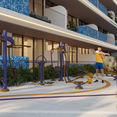 Conectividad • Piscina privada en apartamentos seleccionados • Exclusivo deck de piscina de ocio • Piscina de natación de tamaño completo • Área de juegos para niños • Gimnasio interior y exterior