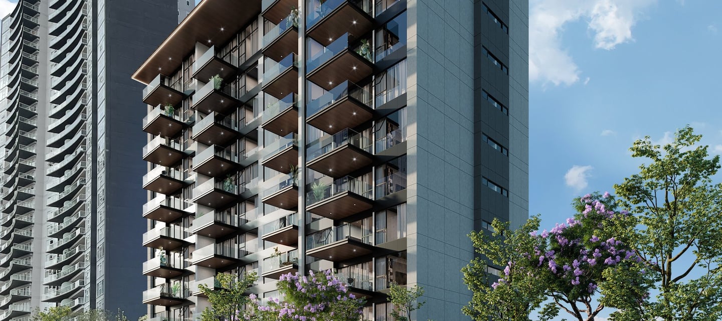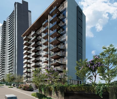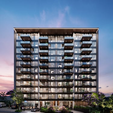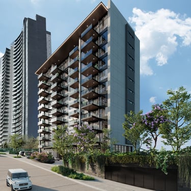 Exclusiva Torre de 10 niveles y 40 departamentos ubicada al pie de una de las más hermosas vialidades primarias de Bosque Real, rodeadas de hermosas áreas verdes. Una propuesta que celebra vivir en armonía.